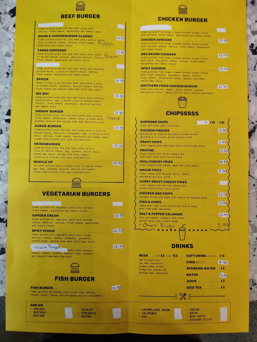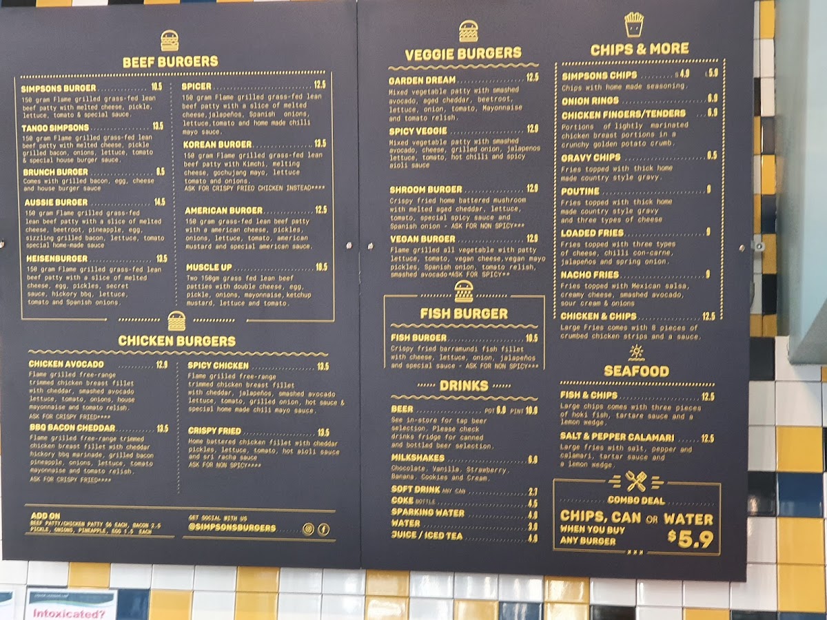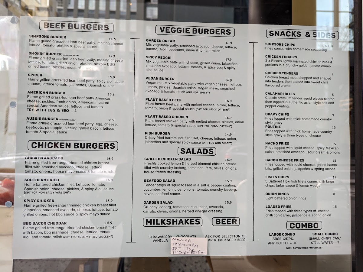 Introducing the menu at SIMPSONS BURGERS (Market St), where each bite is a flavorful journey. Nestled on a quiet street in Melbourne's CBD, this hidden gem offers a delectable range of hearty burgers that have garnered rave reviews from food lovers. Customers rave about the quality and generous portions, making every meal satisfying.